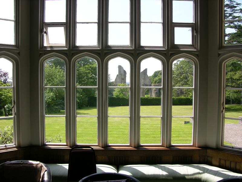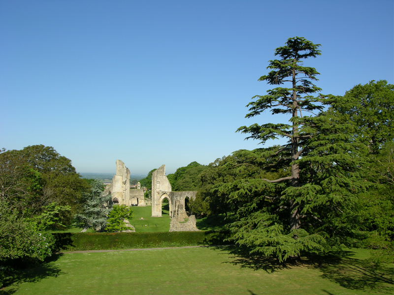 Students practicing Reiki on a sunny lawn in front of the Glastonbury Abbey House.