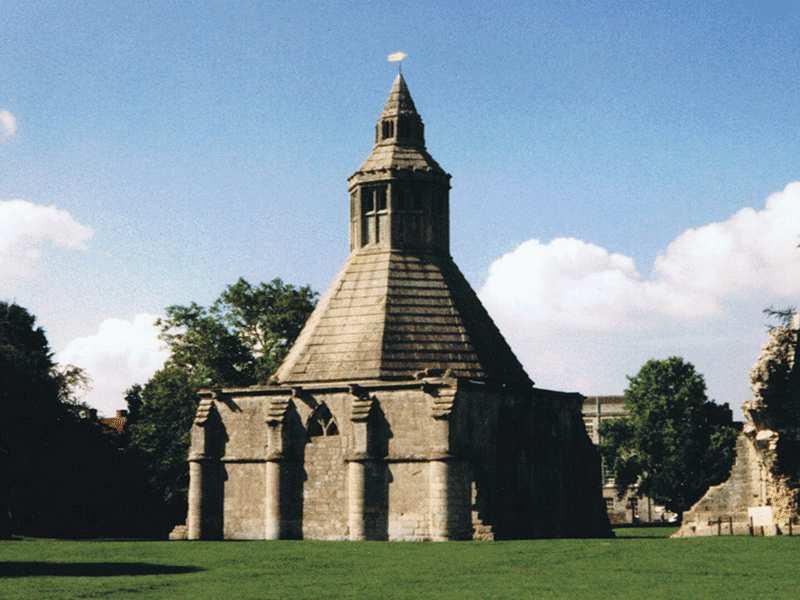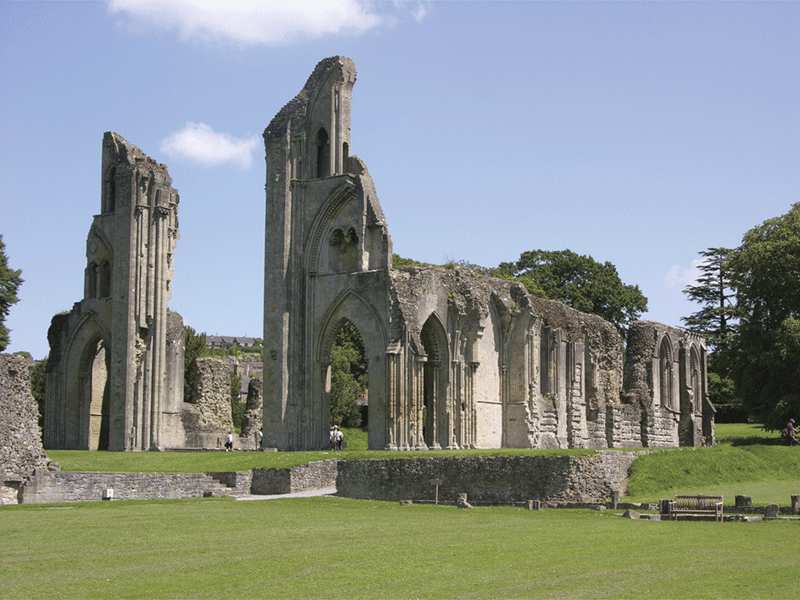 Located in town, the entrance is on Magdalene Street next to the town hall. The Abby, currently in ruins, was the site of the first Christian church in Britain, which, according to legend, was built by Joseph of Arimathea and his disciples about AD 63. King Ine built a new church near this site in 704 and dedicated it to the apostles Peter and Paul. In 943 St. Dunstan became abbot and expanded the church to the largest and wealthiest monastery in Britain, after Westminster. It contained an enormous library and housed hundreds of monks. Pilgrims came to the monastery from all over Britain. A fire destroyed most of the Abby in 1184; however, it was rebuilt and once again became a great monastery. At its peak of activity, thousands of visitors flocked to the Abby yearly from all over Europe. The George and Pilgrims Hotel was built outside the Abby walls on High Street to help house the overflow of visitors. A tunnel allowed visitors to go from the hotel to the Abby, thereby avoiding inclement weather. (This tunnel has since collapsed, but the trap door is still visible in the hotel lobby.) In 1539, King Henry the VIII dissolved the monasteries of Britain, confiscated their lands and treasure, and established the Church of England. The roof of the Abby was removed and this caused it to quickly fall into ruin.