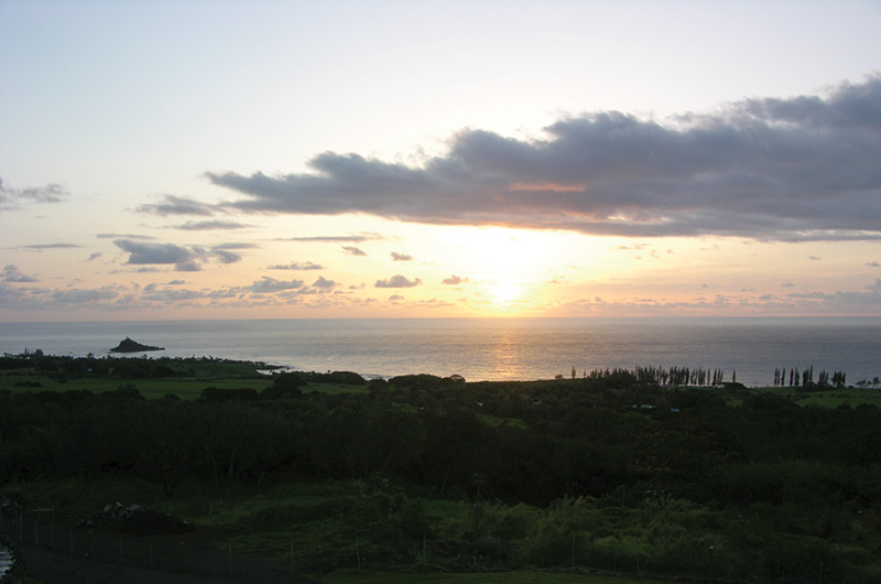 I’d been coming to Hana for several years to teach classes, and I’d often go for walks down the road along the ocean. During these walks I would often look up at the mountains and fantasize about what it must be like to live in one of the homes I could see peeking through the trees and vegetation. I thought of the amazing view they must have of the coastline and the ocean and the beautiful sun and moonrises they must experience. And I’d think about the people who live there and the affect living there must have on their state of mind. How peaceful it must be.