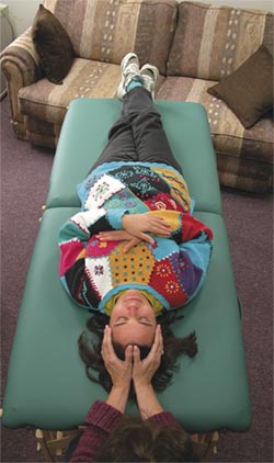 We went into an area where massage tables had been set up, and I treated her for about an hour. After the treatment she said she felt more clearheaded, and we made an appointment to meet again the following morning for another treatment. When I saw her the next morning, she was bubbling over. She told me that she had experienced absolutely no problems walking up the stairs, and in fact had bounded up them like she would have before her stroke. She also felt as if she had slipped back into her body and was lined up again. I treated her once again the following morning, and afterwards she said she could feel her hands from the inside. She was just radiant. I showed her how she could do this treatment on herself when she was home. When I looked at her, it seemed to me that she had realigned her energy, as it all seemed even. She truly had come home in herself.