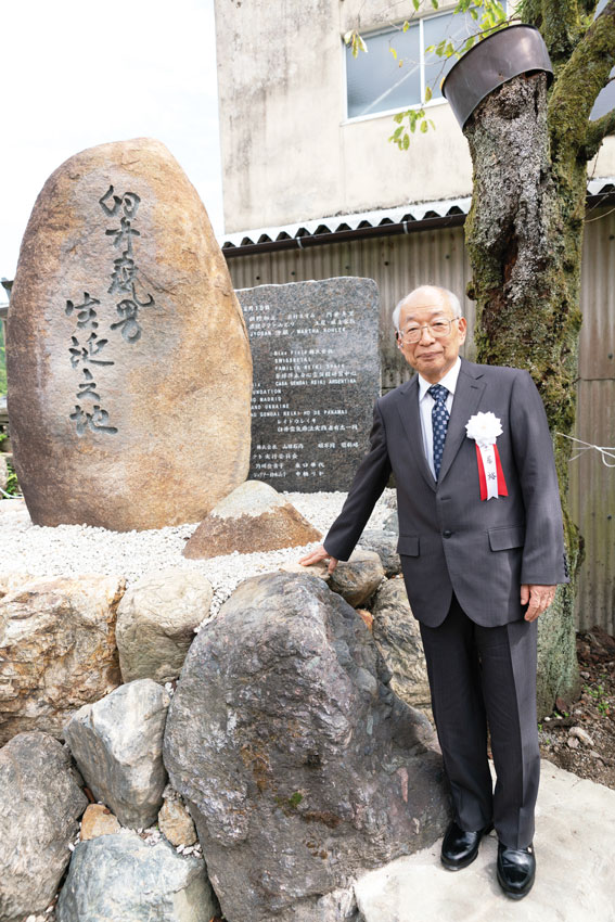 The translation of the text on the left stone says the following: Mikao Usui Sensei was born in Taniai, Gifu, in 1865. During his quest for Anshin Ritsumei on Mt. Kurama, he attained Oneness with the Universe and obtained the ultimate healing ability. He established Usui Reiki Ryoho, and it has quickly spread to the world as Reiki Do for health and happiness. The monument established in the birthplace of Mikao Usui Sensei was made with Kurama Stone found only at Mt. Kurama.